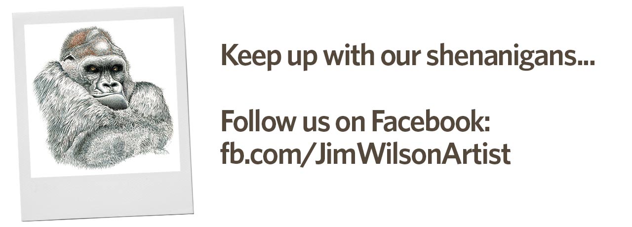 A professional wildlife artist for forty six years, Jim spends many hours seeking out and researching the subjects for his detailed pen & ink and Prismacolor pencil drawings. He relies on reference material gathered from field work, museums, zoos, veterinary hospitals and wildlife rehabilitation facilities.