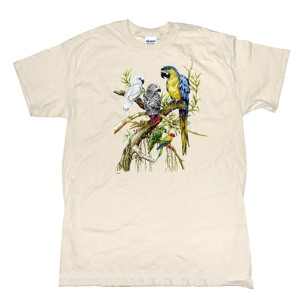 Our T-shirts are heavyweight 100% pre-shrunk cotton. T-shirts are available in adult sizes small through 3XL, and are available in white, ash, or natural color.